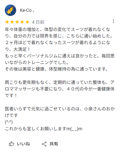 当ジムはGoogle口コミ★5.0(2件)をいただいています。
