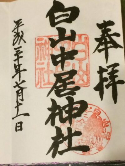 立往生したらどうしようか不安で仕方なかったのですが、無事に白山中居神社を参拝。