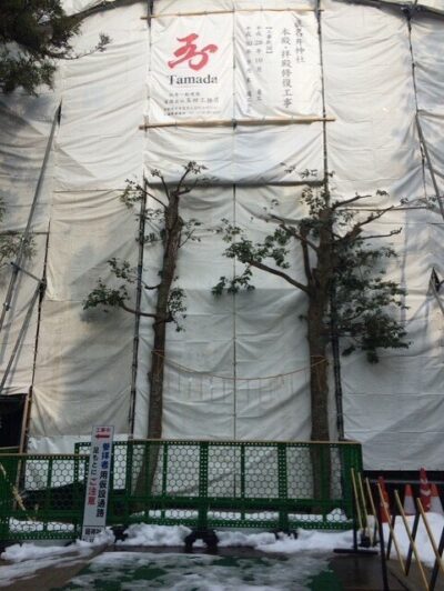 そして本殿に着いたとき、まさかの改装工事中。